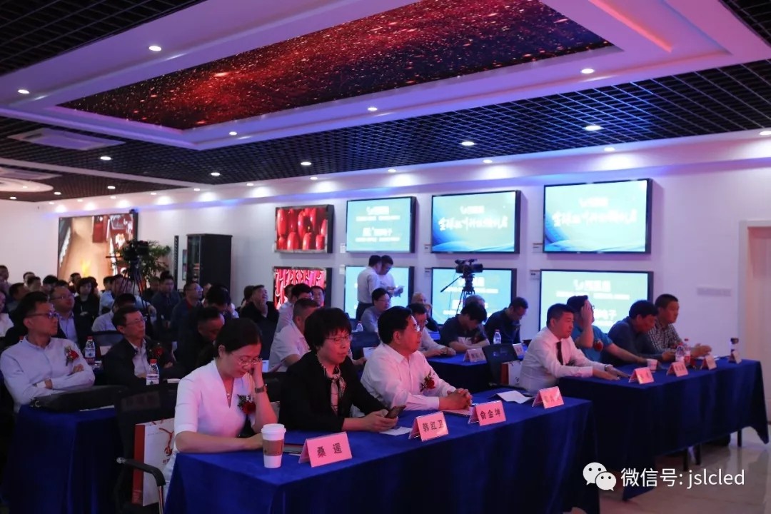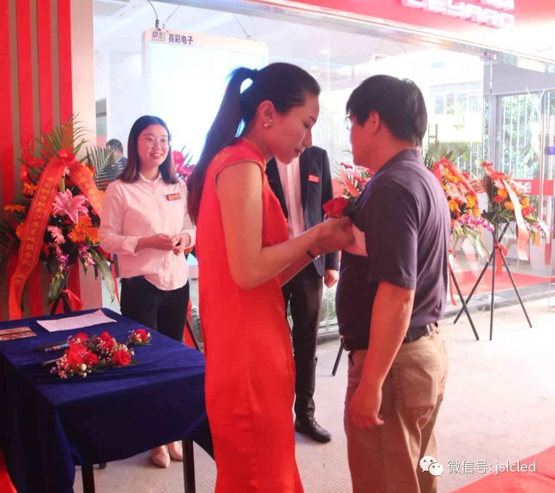 Jiangsu Liangcai electronics co., LTD., general manager of chapter nine yu, Mr DE channel center, vice general manager Mr. Wu, this group (stock code: 603680) chairman of the board YuJinKun and ms Han Hongwei, vice chairman of changzhou federation of industry and commerce on stage together for celebration and opening ceremony.
