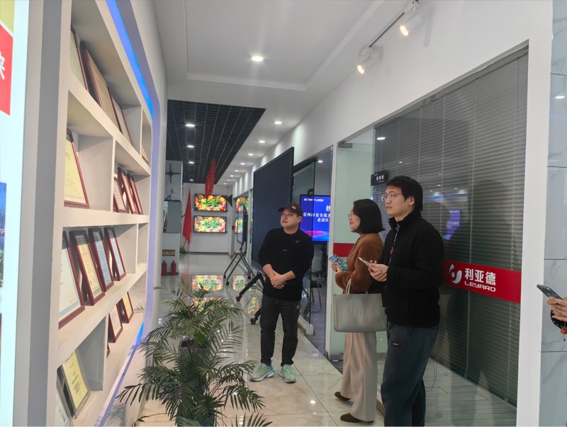 章總陪同到訪代表參觀了利亞德(江蘇·常州)體驗中心,介紹了智能化產品及資質證書,如LED/LCD會議一體機、球形屏、地磚互動屏、3D屏等,包含多類不同的應用場景。