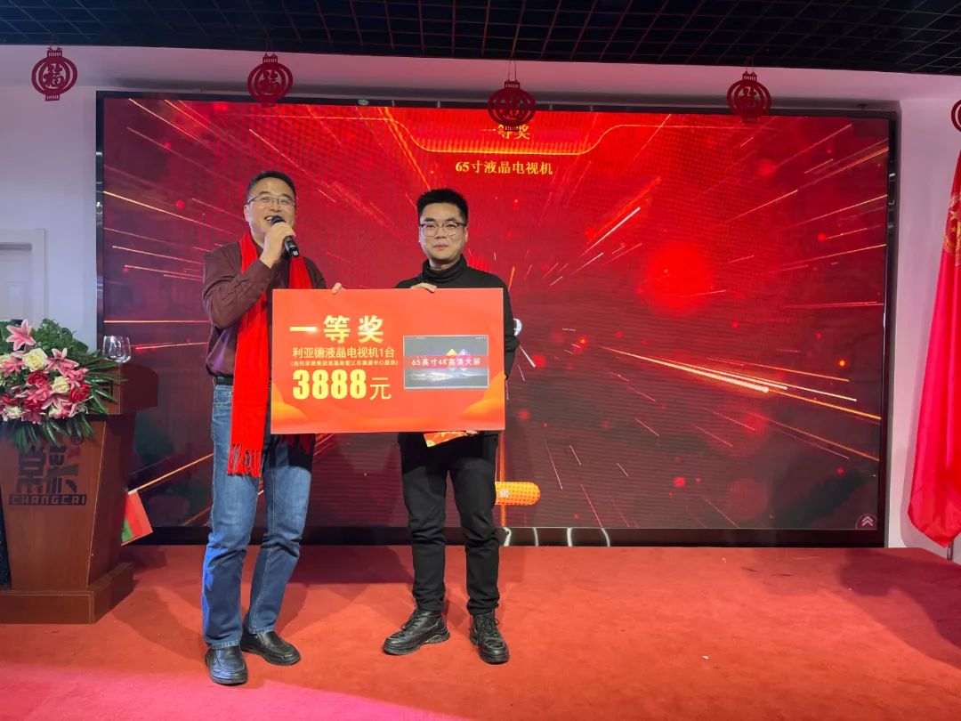 ▲曹立新先生 中國LED工程商聯(lián)盟秘書長(高級工程師) 曹秘書長雖未親臨年會現(xiàn)場,他給我們帶來了新年賀詞: 展望未來,我們滿懷期待!值此辭舊迎新之際,我謹代表中國LED工程商聯(lián)盟和全國精品巡展組委會向大家致以最誠摯的祝福! 在新的一年里,希望江蘇亮彩致力于為客戶提供更好的產(chǎn)品和服務(wù),不斷提升自身的綜合實力,把更多的創(chuàng)新產(chǎn)品推向市場,為更多的客戶提供更優(yōu)質(zhì)的服務(wù),為合作伙伴提供更完善的支持,讓我們一起攜手共進,共創(chuàng)輝煌! 酒興高至,此時情意正濃,讓我們在這載歌載笑的氛圍中,正式拉開今日宴會的序幕。 一等獎得主 年會怎么能少了大家最最最期待的抽獎環(huán)節(jié)呢? 我們的獎項設(shè)置如下: 新年好運來,把好運延續(xù),希望2023年大家都能“兔”來運轉(zhuǎn),鴻運當(dāng)頭。 相聚的時光雖然短暫,但這份感動和美好,卻將永遠留存在我們心中。就讓我們相約在未來的前行路上,一路攀高,彼此照耀。也讓我們相約明年再會。 不負過去,不懼未來。 以奮斗之心,迎接2023!