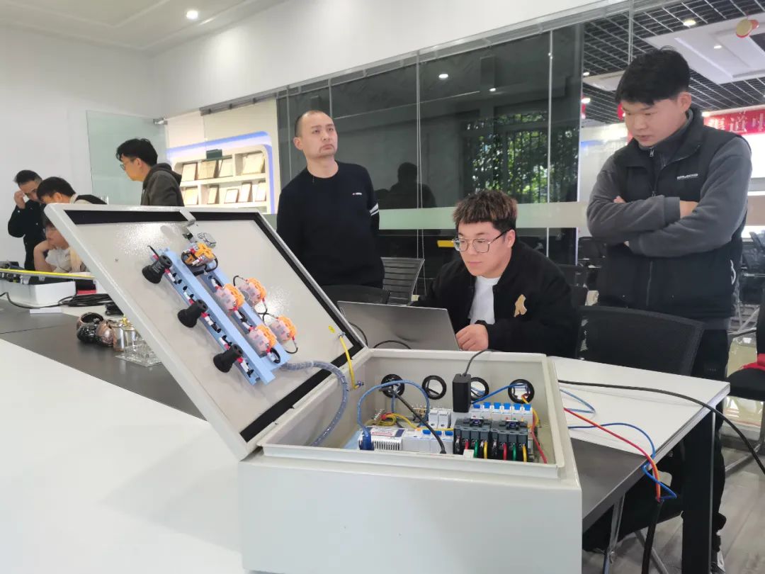 實操考核分為P1.2模組維修、芯片維修、PLC智能配電柜操作、系統調試操作。在實操中,工程師相互取長補短、分享學習心得,在交流中提升自身的專業知識技能。
